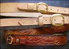 • Accessories for motor cycle enthusiasts, individualised to your requirements • Quality fashion items such as hair clasps, pendants, wristbands and belts • Decorative panels for individualising bridles, saddles and panniers • Personalised straps for all manner of musical instruments • Sculptures and fine art items • Adult items • Repair and renovation of your leather items. If you have a worn-out leather product, I will attempt to reproduce it. If you want it, I can probably make it for you! Here are a few examples of my work- click on a thumbnail to see a larger version. |