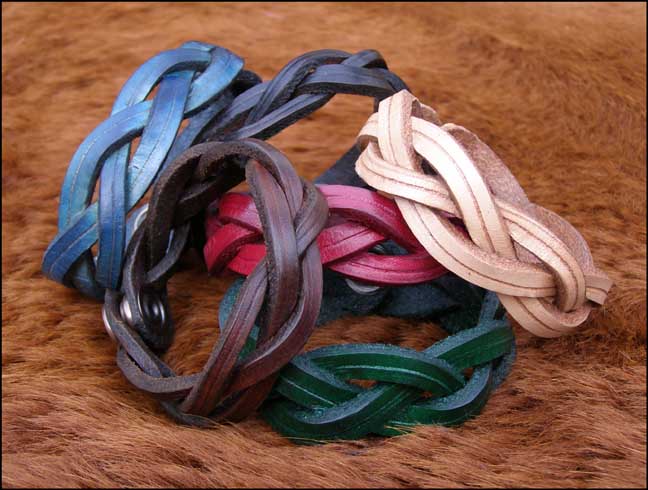 The classic 'magic' wristband is back! Plaited from a single unbroken piece of premium hide and fastened with a strong stud, they are available to fit all wrists and come in a variety of groovy colours. £8.50 each inc UK P&P.