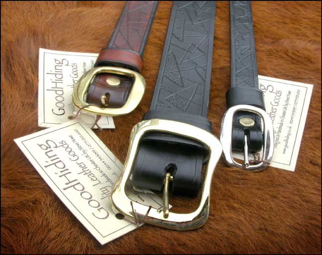 Another look at my classic 'Art Deco' hand-tooled belts. They are available off-the-peg or made to measure in a variety of widths, lengths and colours, using the best available materials- premium hides and the finest saddlery buckles, stains and finishes and range in price from £30.00 to £45.00 inc P&P. |
